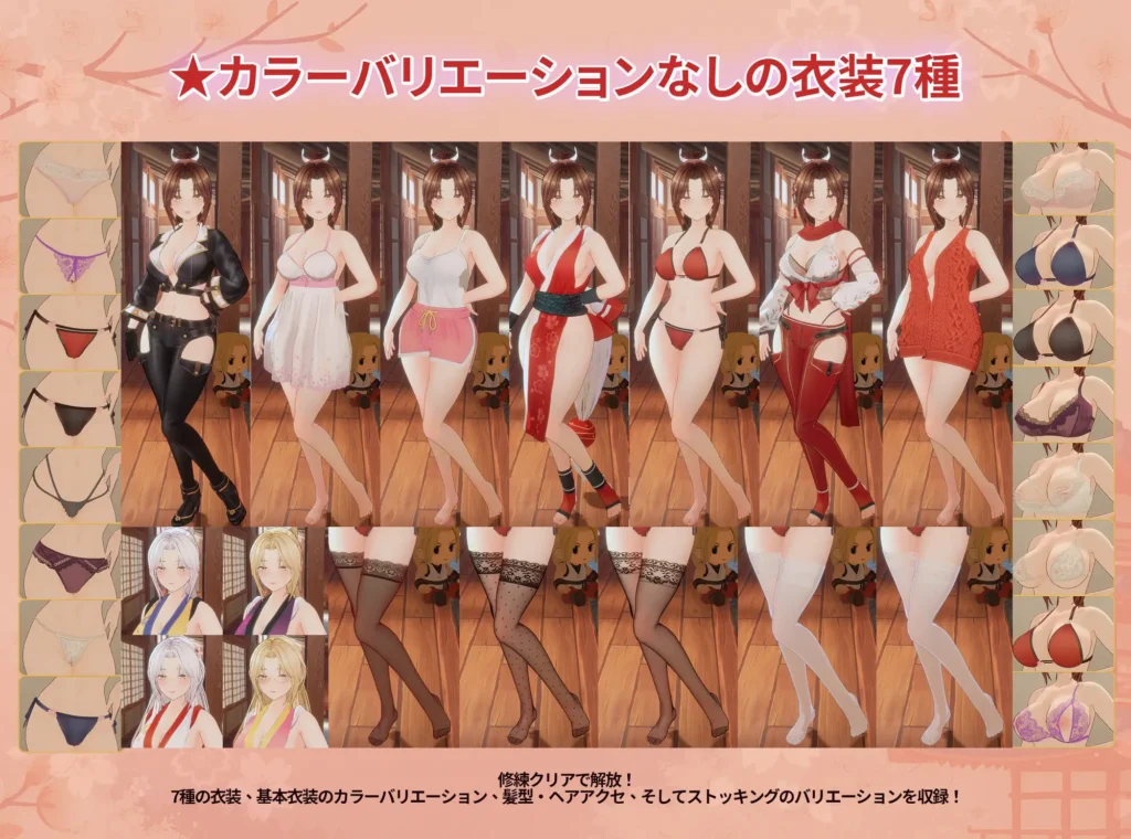 修練を重ねるたび、体位・コスチューム・ボイスが段階的に解放され、