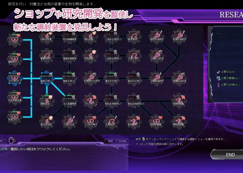 プレイヤーは悪の組織の研究者となり、捕らえた魔法少女「月霧真那」を