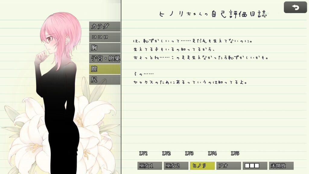 - 戦闘なし&大人値/性欲/メスバレ値の管理が中心で、初心者でも遊びやすい。