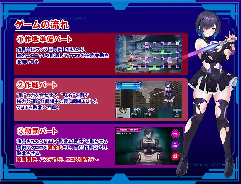 全5章構成で構成されるシナリオは、作戦→懲罰→幕間という堕落ループで構成され、クロエは心身ともに崩壊していく。