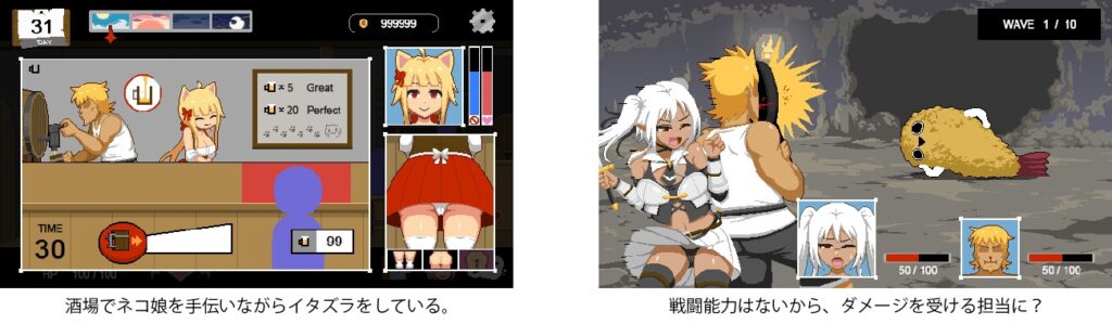 Handyman Fantasy ハンディマン・ファンタジーは、異世界に飛ばされた“伝説の便利屋”が、アルバイトとセクハラとHを同時並行でこなしていくドット絵RPG。